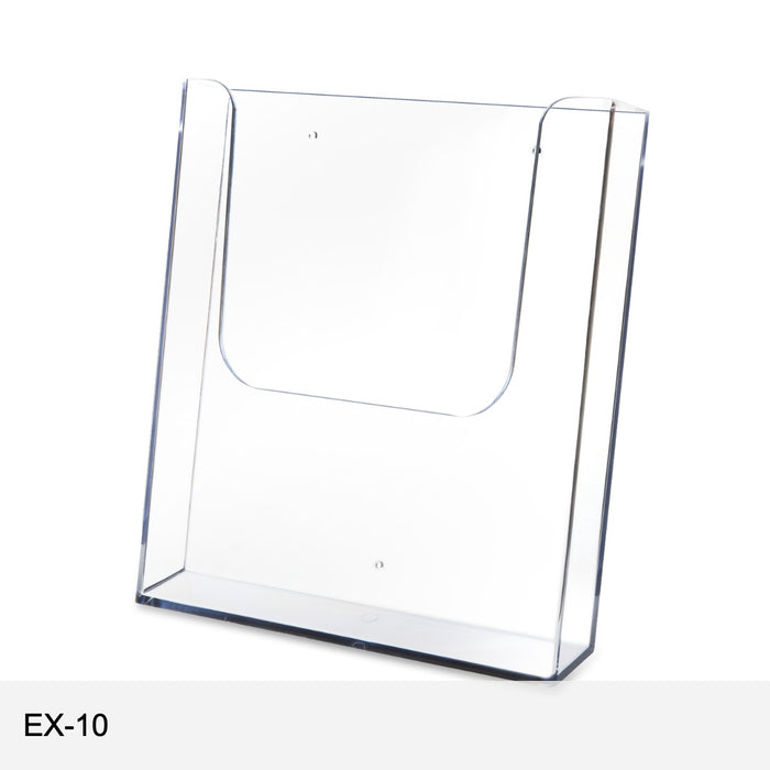 High quality, economical, injection moulded brochure holder manufactured from durable, crystal clear plastic in an attractive and contemporary design.
