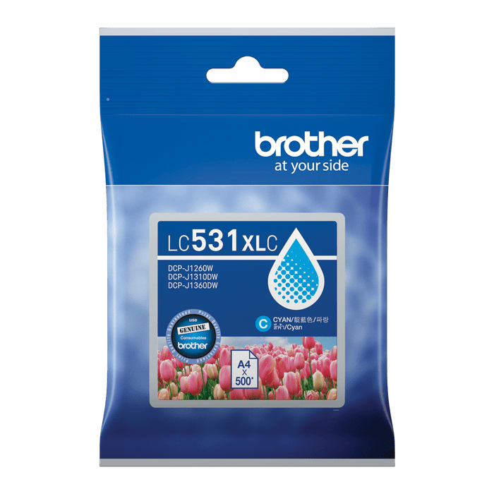The Brother LC531XLC Black High Yield Ink Cartridge – Single Pack. Prints up to 500 pages (approx. cartridge yield is declared in accordance with ISO/IEC 24711).