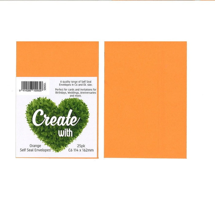 'Create with' C6 coloured self seal envelopes. These envelopes are designed for A5 folded in half or A4 folded twice in half postcards and invitations.