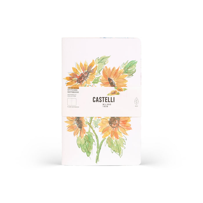 Castelli Quaderno Stitched Aquarello Plain Notebook, Sunflowers, 130mm x 210mm