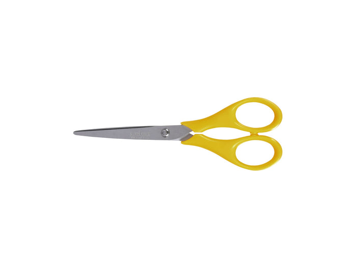 Designed for students, these scissors feature a stainless steel blade and comfortable Yellow right hand plastic handle.