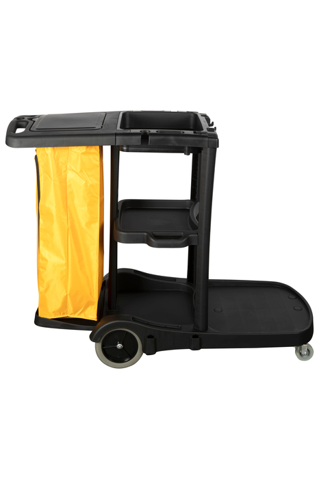 The Cleanlink Janitors Trolley is the perfect tool for cleaners. With 3 tiers of compartments to carry an array of accessories and a waste storage bag. Large rear wheels and front swivel castors allow smooth effortless mobility.