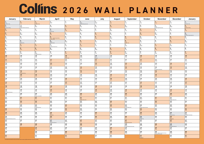 2026 Collins A3 Unlaminated Double Sided Wall Planner, 420mm x 297mm