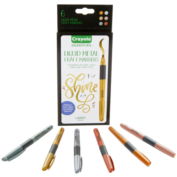 Crayola Signature Liquid Metal Permanent Art Markers add an extra sleek sheen to school projects, hand lettering, homemade cards, crafts and other colorful art projects.
