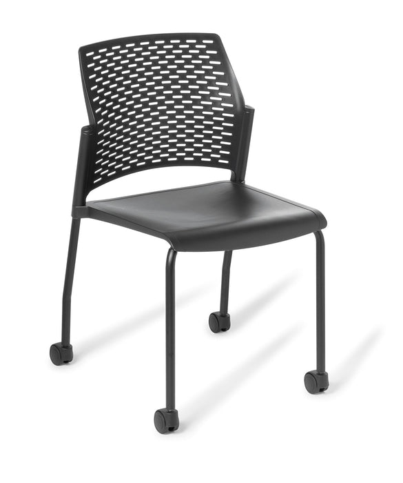 Eden Punch Black 4-Leg on Castors Community Chair, Black Polypropylene Shell