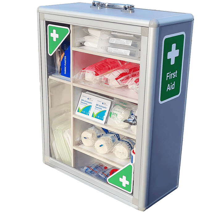 First Aid Kit 1-50 In Clear Front First Aid Cabinet C/W 1-50 Person Contents And Stickers