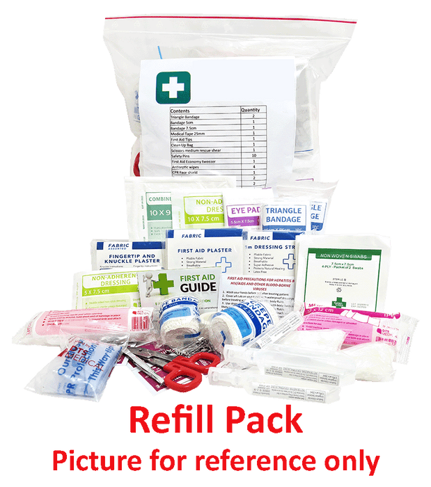 Refills are a great way to get your kit quickly back to the level you want, it takes the hassle our of working out what still with in date and working out what's been used or dirty, these are full contents replacements for our regular workplace contents