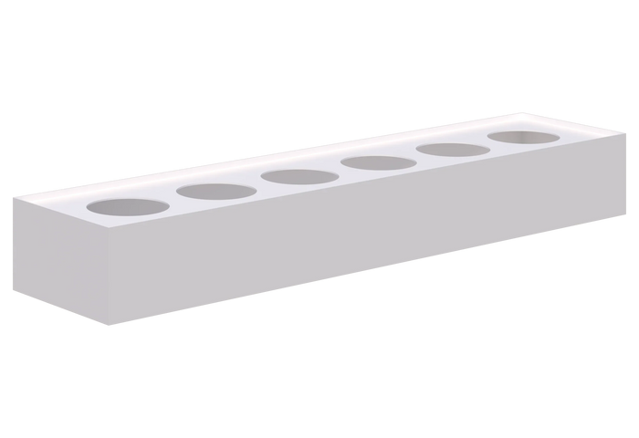 Planter unit for live or artificial plants, fits 6 pots (200mm dia), size 180mmH x 1800mmL x 450mmD.