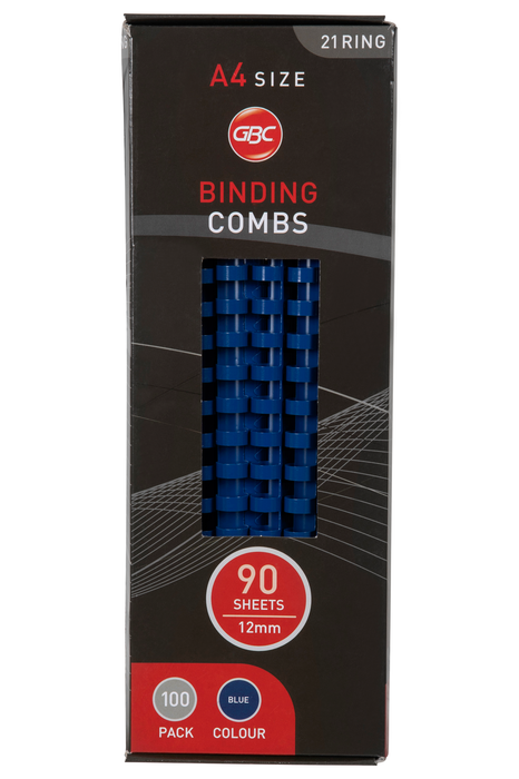 GBC Plastic Binding Comb 12mm, Blue, 21 Loop, Pack of 100