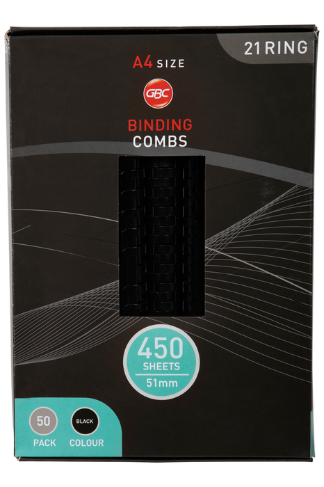 GBC Plastic Binding Comb 51mm, Black, 21 Loop, Pack of 50