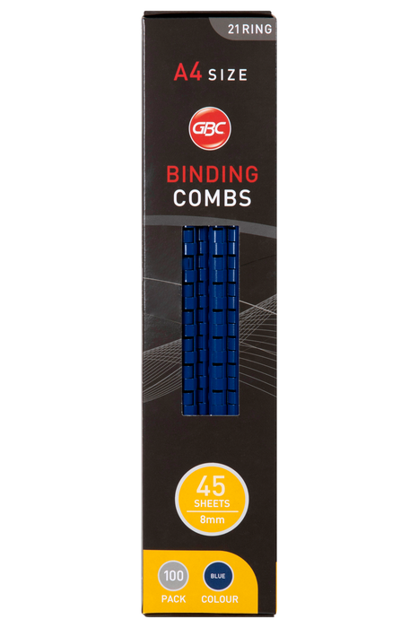 GBC Plastic Binding Comb 8mm, Blue, 21 Loop, Pack of 100