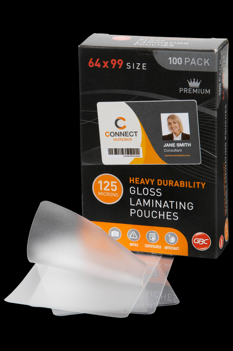 GBC Laminating Pouch, 64mm x 99mm, Gloss, 125 Micron, Pack of 100's