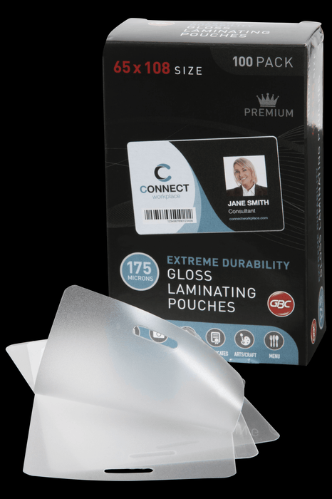 GBC Laminating Pouch, 65mm x 108mm, 175 Micron, Pack of 100's