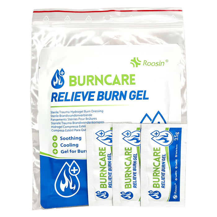 Handy Pack of Basic Burn Injury Relief Items - 1 x 10x10cm Burn Dressing, 3 x Burn Gel Sachets