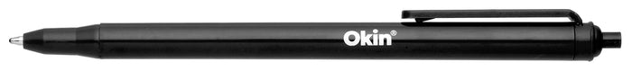 Okin One Piece Ballpoint Pen, 1.0mm Medium Tip, Retractable, Black, 10's pack