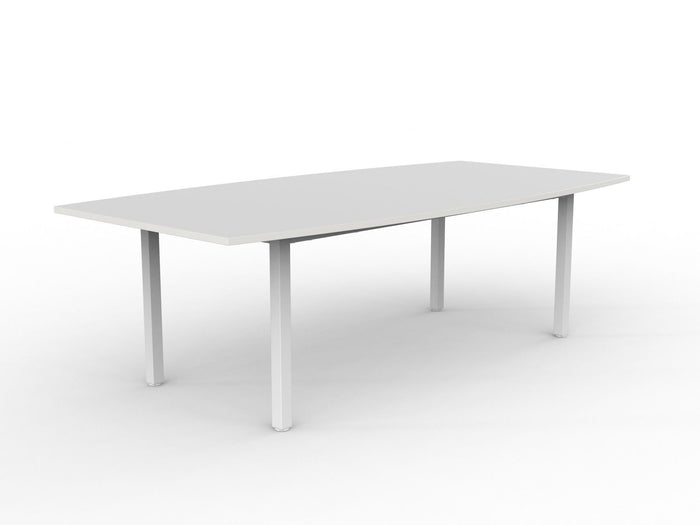 Knight's Cubit Boardroom Table 2400mm x 1200mm, Boat Shaped Top, White Frame (Choice of Worktop Colours)