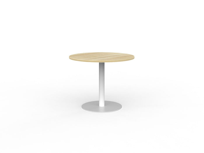 Knight's Polo Meeting Table 900mm Round, White Frame, Atlantic Oak Top