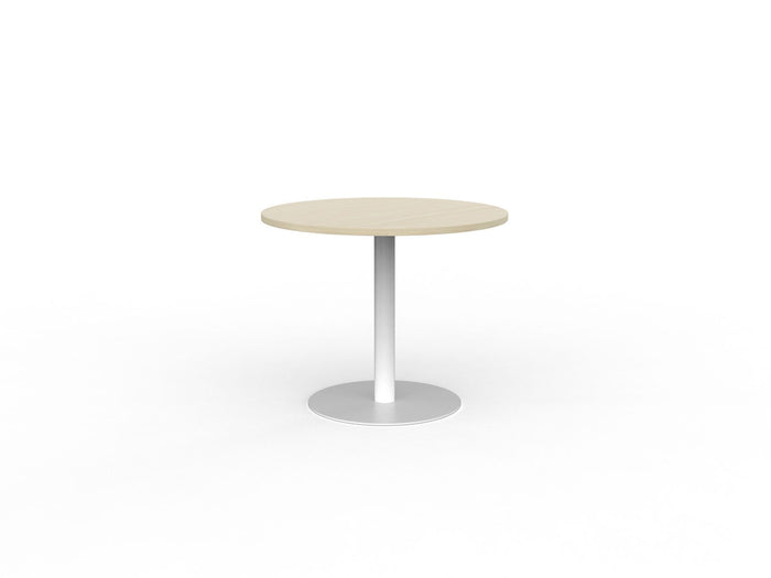 Knight's Polo Meeting Table 900mm Round, White Frame, Nordic Maple Top