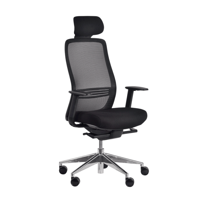 Konfurb Luna High Back Ergonomic Chair with Polished Aluminium Base, Arm Rest, Head Rest, Black, Assembled
