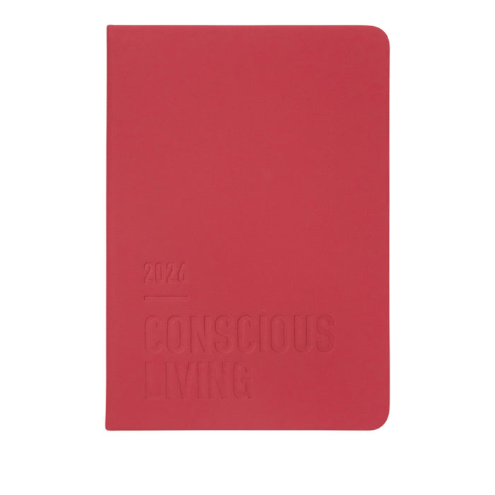 Letts of London Diary Conscious A5 Week to View in Berry. Live an organised life with a touch of nature! Our Conscious Collection now features new, nature-inspired Berry - drawing from the serene beauty of mountains and lakes. Crafted with sustainability in mind, these rich colours bring a grounded elegance to your planning, perfect for those who care about both style and the planet. Timeless diary style - NEW Multilanguage Recycled white paper Fountain pen friendly paper - NEW Covers made with recycled polyester from PET bottles Printed with soy ink Vegan glue Semi-flexible cover with embossed motif Ribbon page marker Products compatible with the Letts of London Reminder App Compatible with the Letts of London Reminder App