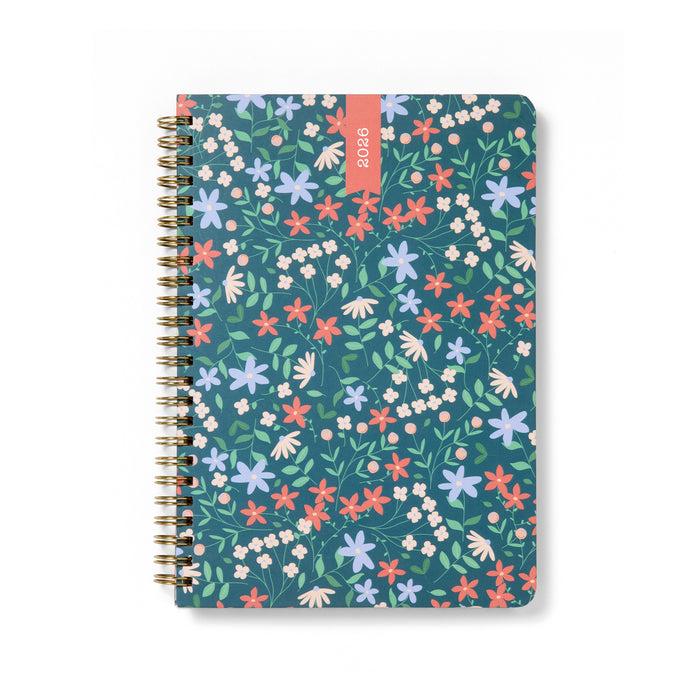 Letts of London Diary Spring Valley, A5 Week to View in Green. Time for a fresh start! Planning ahead will be a walk in the park with this lovely diary with floral patterns. Wiro binding and handy accessories carry you from city to country or anywhere in between. Features - Social diary style multi-language - White paper from sustainable sources - Wiro bound - Matt laminated cover with rounded corners - Pop-out accessories - Double-sided pocket