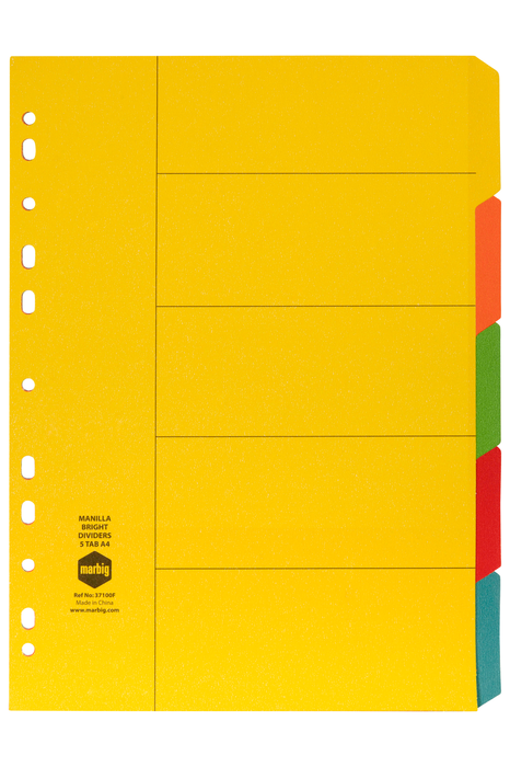 Marbig A4 Bright Cardboard Indices/Divider, 5 Tabs