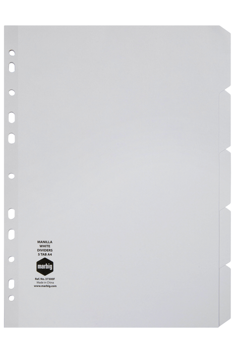 Marbig A4 White Cardboard Indices/Divider, 5 Tabs