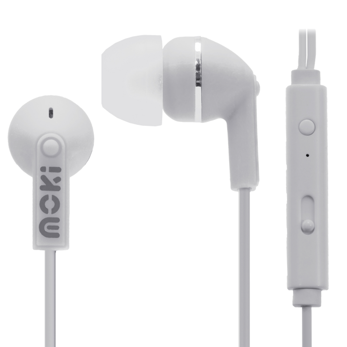 Moki Noise Isolation Earbuds + Microphone & Control - White