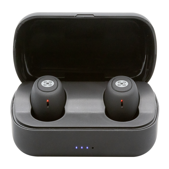 MokiBuds True Wireless Stereo Earphones are an in-ear TWS earphone that will automatically pair once you remove both earbuds from the ChargeDock. The MokiBuds have a multi-function button on the outside of the earbud to control music playback.