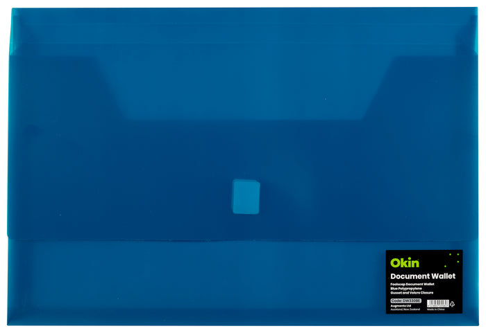 Okin Foolscap Document Wallet FC Velcro Closure, Blue