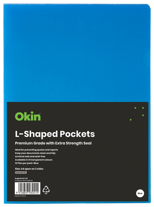 Okin A4 Blue L Shaped Pockets 12's pack