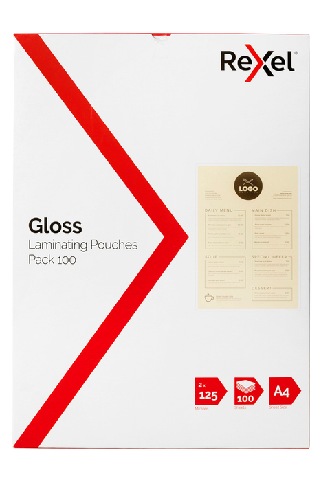 Rexel laminating pouches provide superior document protection. Featuring the highest quality materials, these pouches are crystal clear with a high gloss finish.