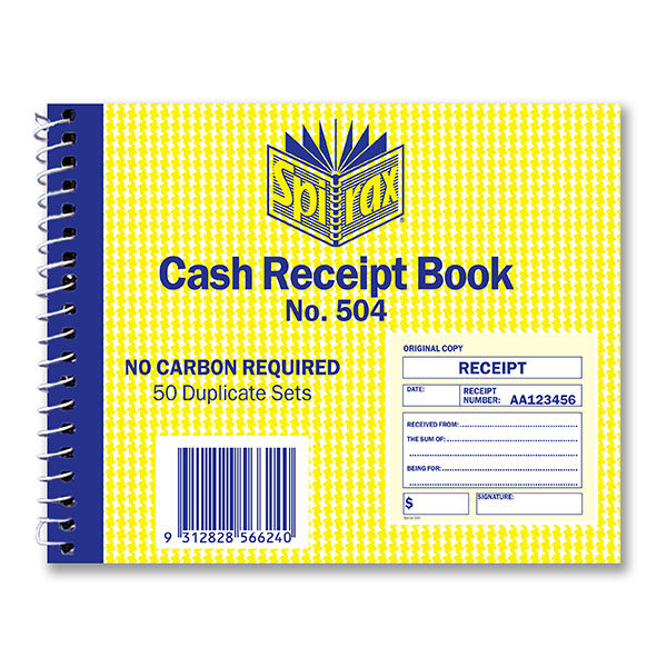 Spirax Cash Receipt Book, 102mm x 127mm, 50 Duplicate Sets (504)
