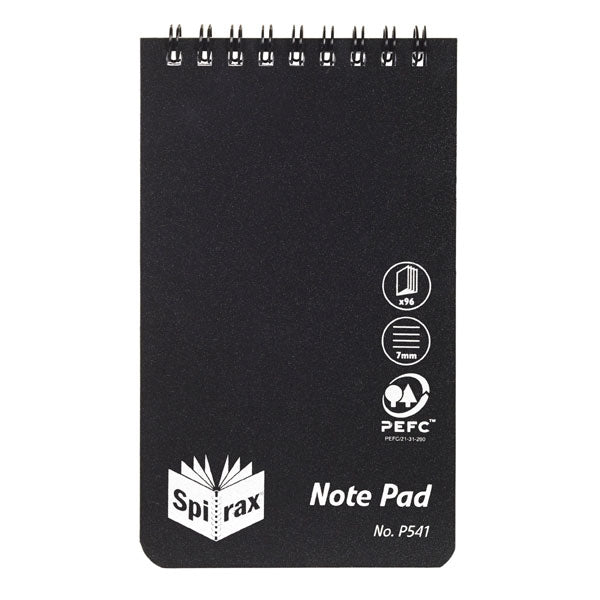Spirax Black Polypropylene Cover Notebook, Top Opening, 147mm x 87mm, 96 Pages (P541)