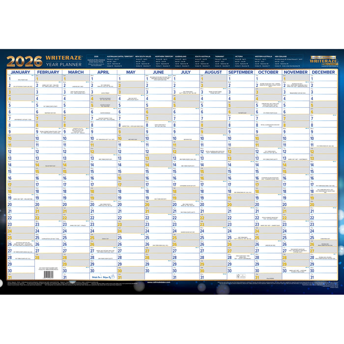 2026 Writeraze Wallplanner 500x700mm Laminated
